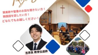 東京オンヌリ教会チームによる特別礼拝FOLLOW JESUS!!(フォロー ジーザス!!)賛美歌や聖書のお話を聞きたい方!韓国語を話したい方・・・!どなたでもお越しください!2026年 2 月 8 日(日)礼拝 10:30~12:00 無料...