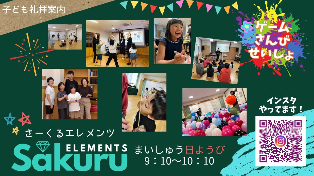「君は愛されている」「君は大切だよ」を伝えるために、エレメンツは聖書から神様の愛を伝え続けています。サンデーエレメンツ「子ども礼拝」です。だれでも歓迎いたします!