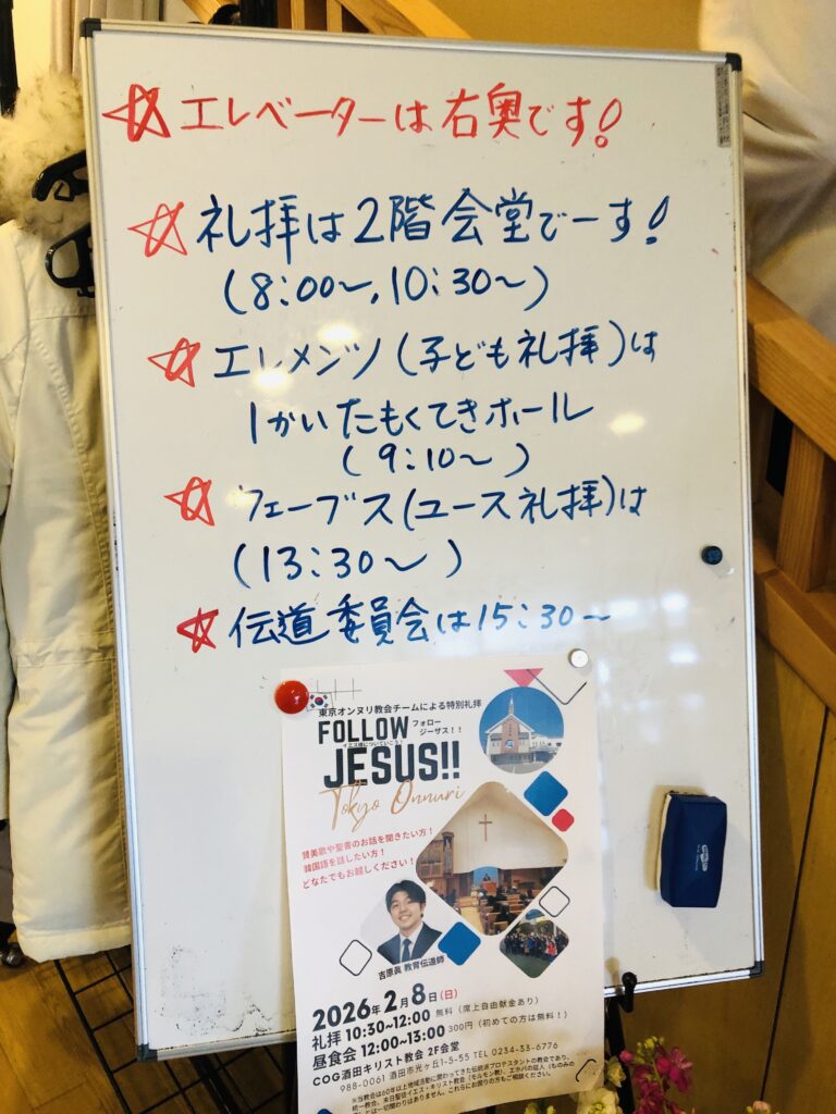 礼拝 10:30~12:00 無料(席上自由献金あり)